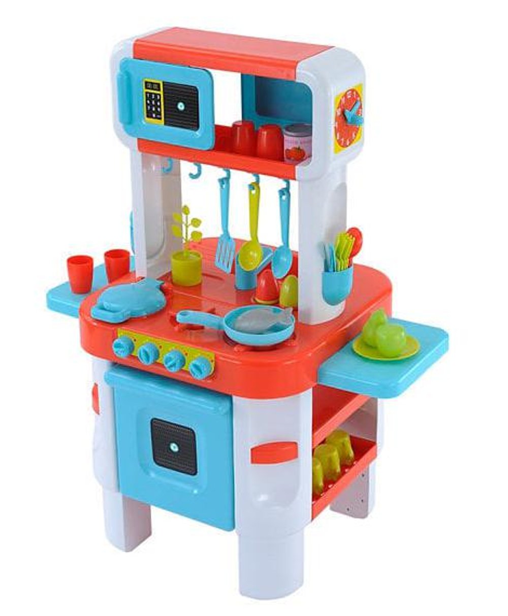ELC Little Cook’s Kitchen memiliki banyak fitur yang dapat mendukung si kecil bermain peran menjadi koki. Ajak dirinya untuk mencuci bahan-bahan makanan sebelum memasaknya. Dengan suara kompor yang menyala, si kecil tentu akan merasa seperti sedang memasak betulan! Terdapat pula oven untuk memanggang kue atau makanan lainnya. Setelah memasak, jangan lupa cuci piring dengan keran atau bisa juga dengan dishwashernya. Koki kecil Anda tentu akan semakin senang bermain masak-masakan! Perlengkapan yang disewakan: 1 buah spatula, 1 buah teflon, 2 buah piring makan, 2 buah cangkir, 2 buah gelas, 2 set sendok, garpu dan pisau.